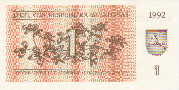 Lithuania 1 Talonas, 1992391 Talonas1992UNC£1.00
