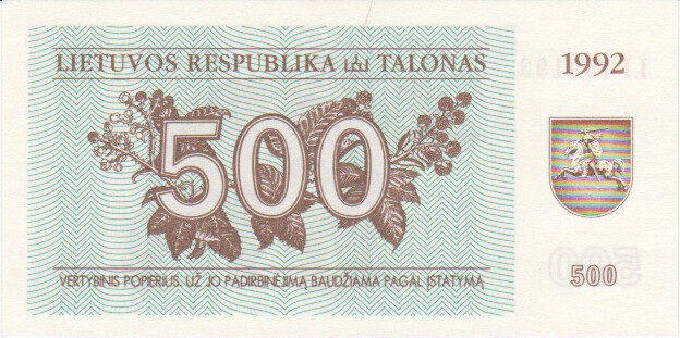 Lithuania 500 Talonu, 199346500 Talonu1993UNC£2.00