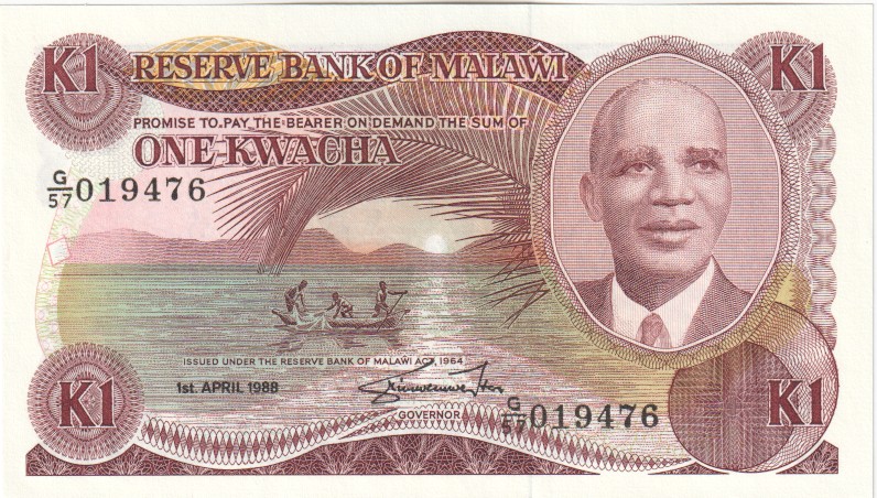 Malawi 1 Kwacha,  1. 4.198819b1 Kwacha 1. 4.1988UNC£12.00