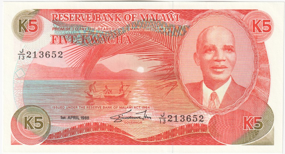 Malawi 5 Kwacha,  1. 4.198820b5 Kwacha 1. 4.1988UNC£80.00
