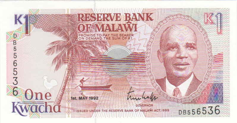 Malawi 1 Kwacha,  1. 5.199223b1 Kwacha 1. 5.1992UNC£4.00