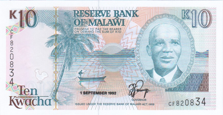 Malawi 10 Kwacha,  1. 9.199225b10 Kwacha 1. 9.1992UNC£7.50