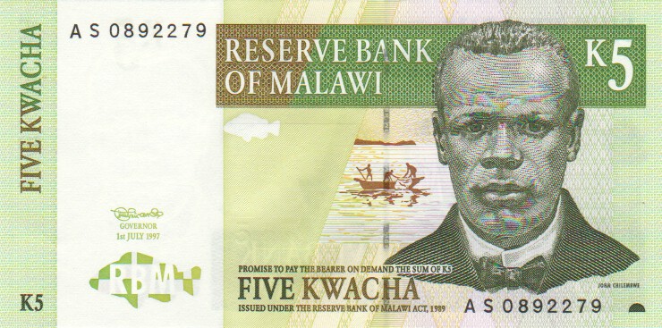 Malawi 5 Kwacha,  1. 7.1997365 Kwacha 1. 7.1997UNC£1.00
