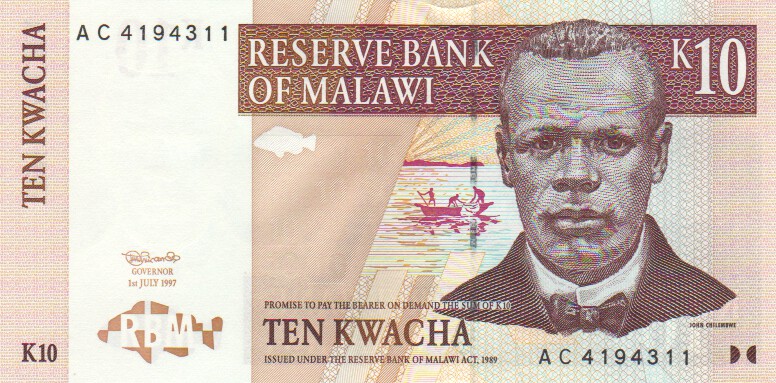Malawi 10 Kwacha,  1. 7.19973710 Kwacha 1. 7.1997UNC£1.50