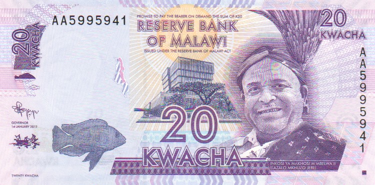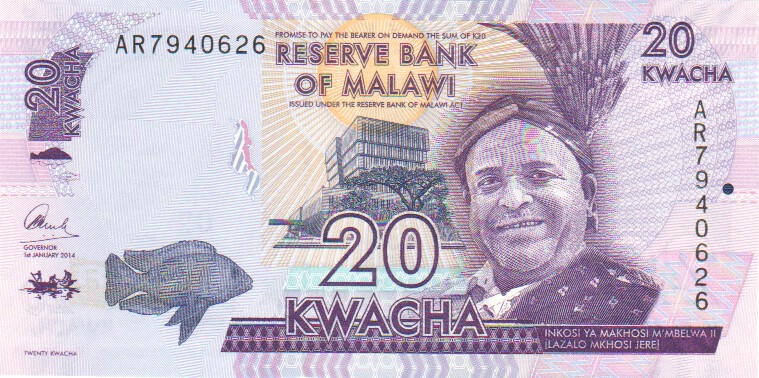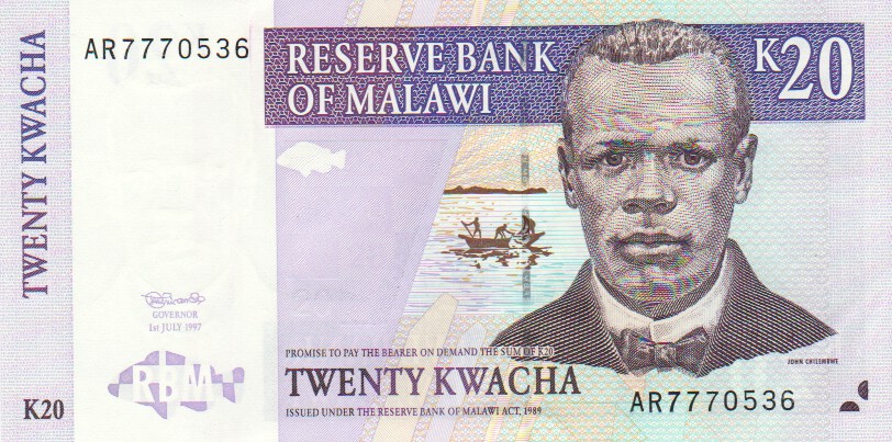 Malawi 20 Kwacha,  1. 7.19973820 Kwacha 1. 7.1997UNC£3.00
