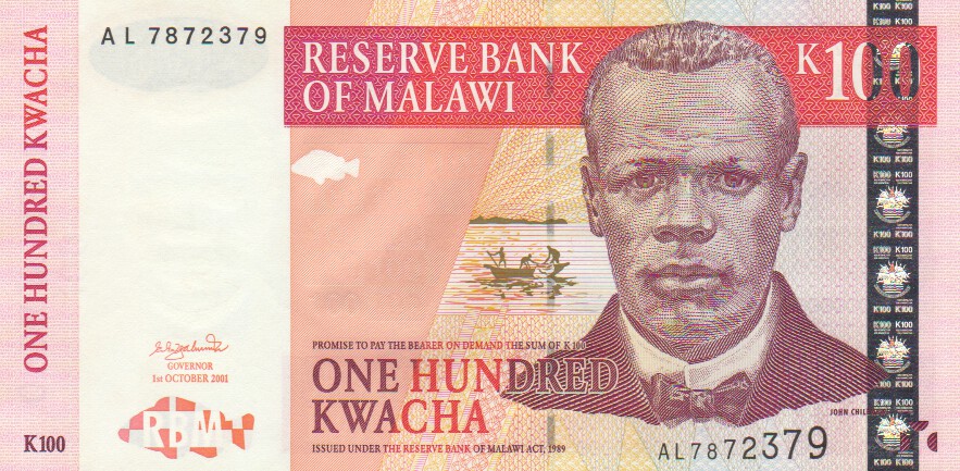Malawi 100 Kwacha,  1.10.200146100 Kwacha 1.10.2001UNC£8.00