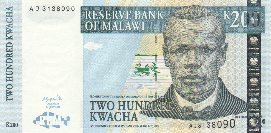 Malawi 200 Kwacha,  1. 7.200147a200 Kwacha 1. 7.2001UNC£12.00