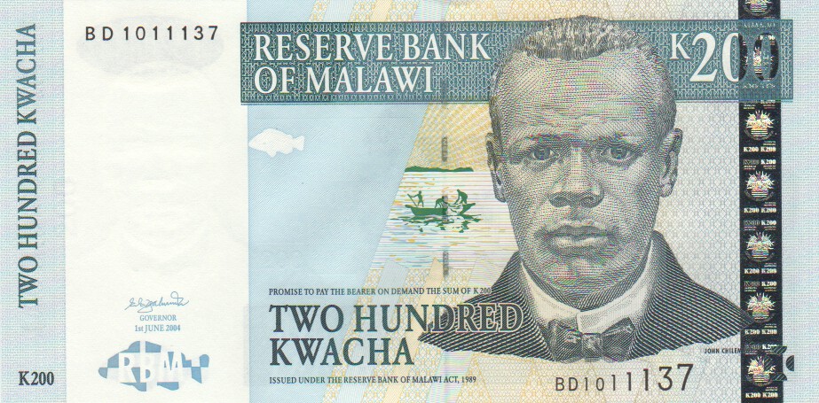 Malawi 200 Kwacha,  1. 6.200455a200 Kwacha 1. 6.2004UNC£6.00