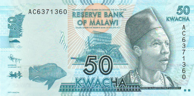 Malawi 50 Kwacha,  1. 1.20125850 Kwacha 1. 1.2012UNC£1.00