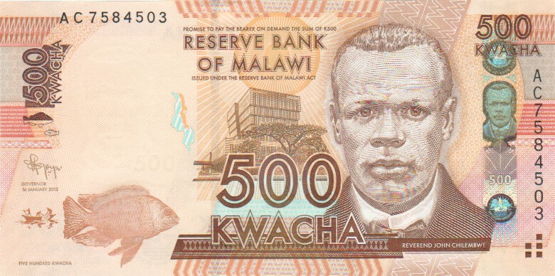 Malawi 500 Kwacha,  1. 1.201261a500 Kwacha 1. 1.2012UNC£3.50