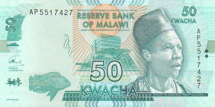 Malawi 50 Kwacha,  1. 1.201764d50 Kwacha 1. 1.2017UNC£1.00