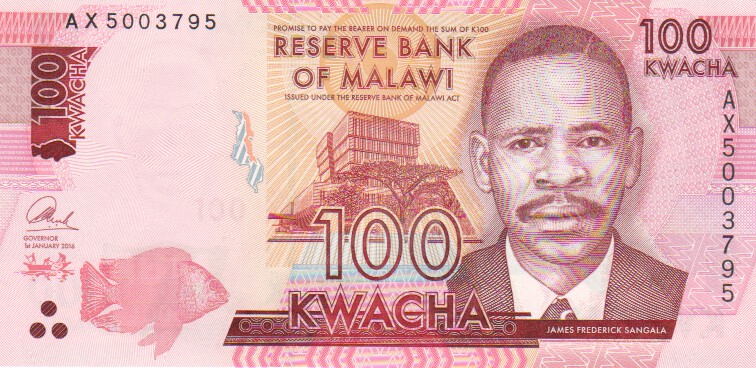 Malawi 100 Kwacha,  1. 1.201665c100 Kwacha 1. 1.2016UNC£1.50