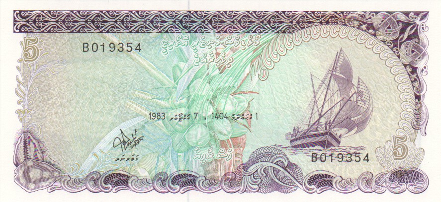 Maldives 5 Rufiyaa, 198310a5 Rufiyaa1983UNC£4.00