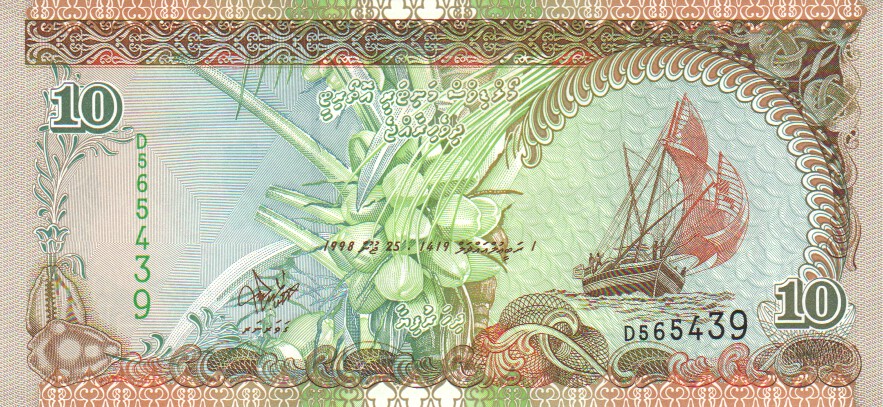 Maldives 10 Rufiyaa, 199819a10 Rufiyaa1998UNC£2.50