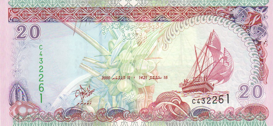 Maldives 20 Rufiyaa, 200020b20 Rufiyaa2000UNC£4.00