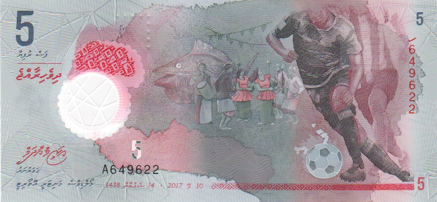 Maldives 5 Rufiyaa, 2017new5 Rufiyaa2017UNC£1.00