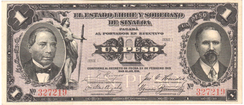 Mexico 1 Peso, 22. 2.1915S-10431 Peso22. 2.1915UNC£55.00