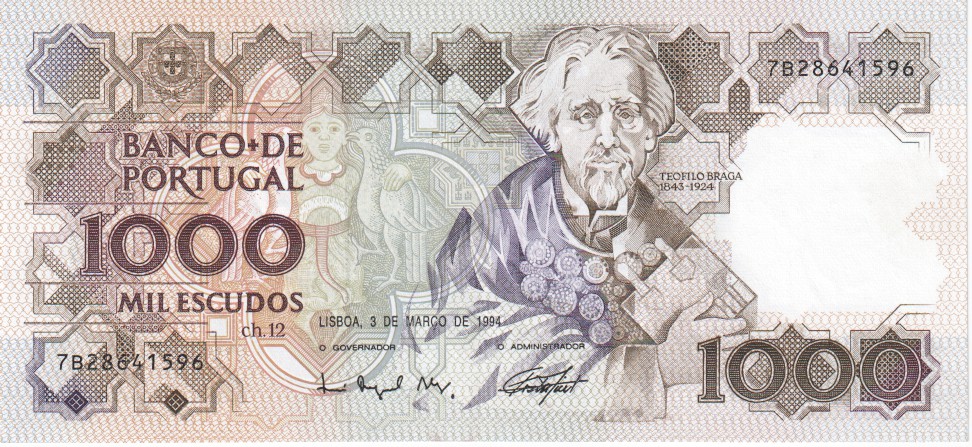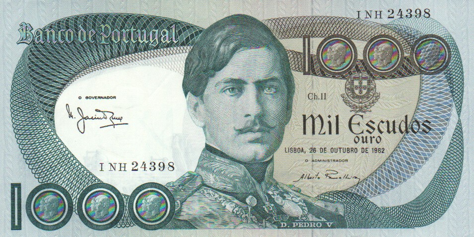 Portugal 1000 Escudos, 26.10.1982175e1000 Escudos26.10.1982aEF£16.00Pin holes