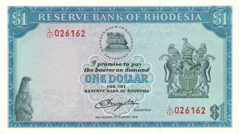 Rhodesia 1 Dollar,  2. 8.1979381 Dollar 2. 8.1979UNC£65.00replacement note W/1