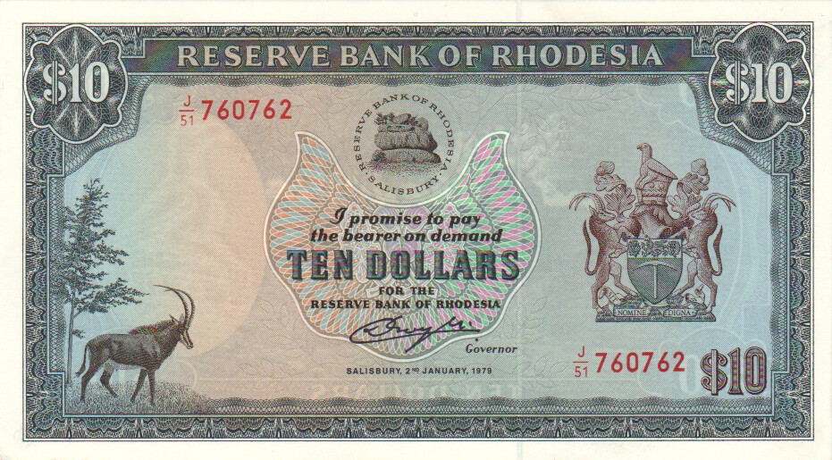 Rhodesia 10 Dollars,  2. 1.19794110 Dollars 2. 1.1979EF£45.00