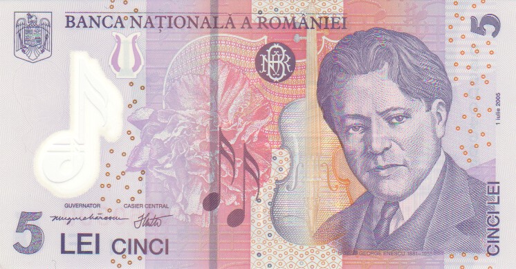 Romania 5 Lei,  1. 7.20051185 Lei 1. 7.2005UNC£3.00polymer note