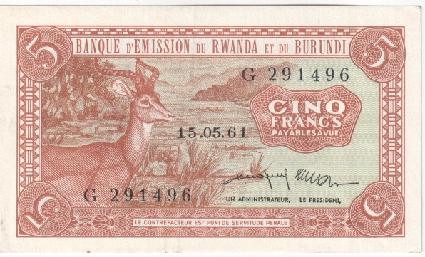 Rwanda-Burundi 5 Francs, 15.5.19611b5 Francs15.5.1961aEF£120.00