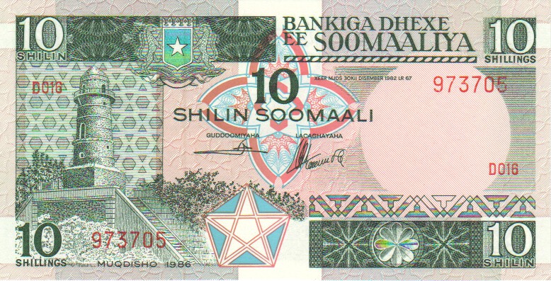 Somalia 10 Shilin, 198732c10 Shilin1987UNC£4.00