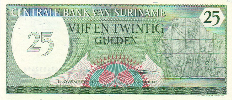 Suriname 25 Gulden,  1.11.1985127b25 Gulden 1.11.1985UNC£1.00
