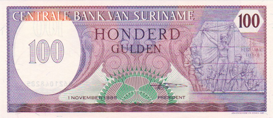 Suriname 100 Gulden,  1.11.1985128b100 Gulden 1.11.1985UNC£1.50