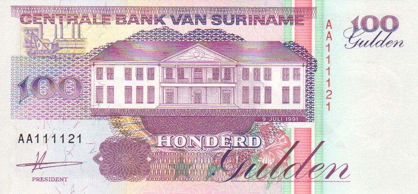 Suriname 100 Gulden,  1. 7.1986133a100 Gulden 1. 7.1986UNC£1.50