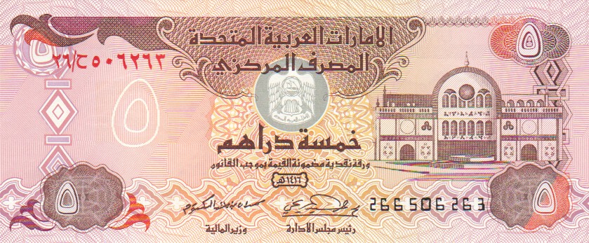 United Arab Emirates 5 Dirhams, 199312a5 Dirhams1993VF£6.00annotation '13' on front
