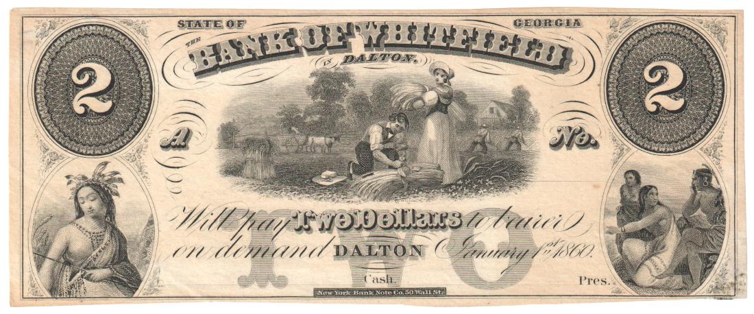 United States Of America Bank of Whitfield, State of Georgia, 2 Dollars,  1. 1.1860 - - -Bank of Whitfield, State of Georgia, 2 Dollars 1. 1.1860aUNC£75.00unissued