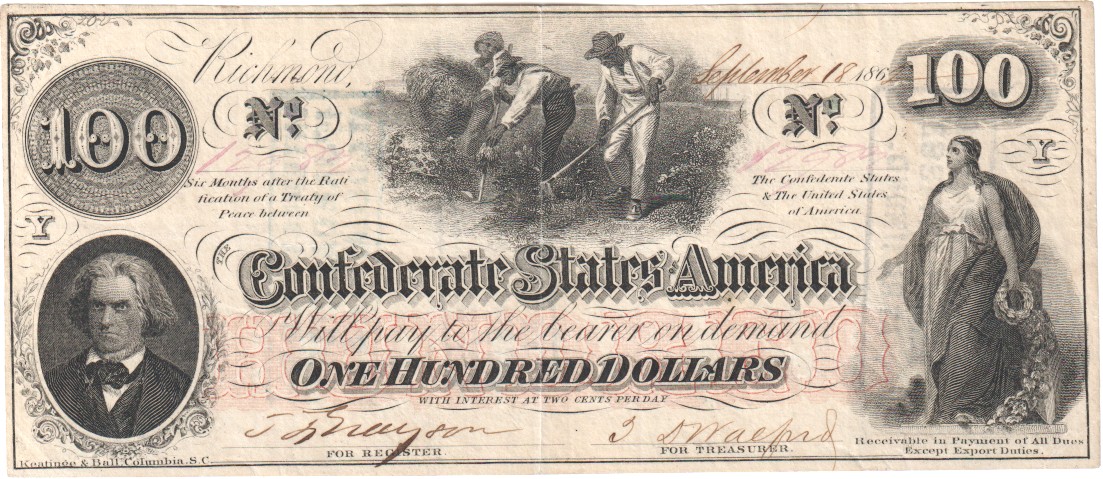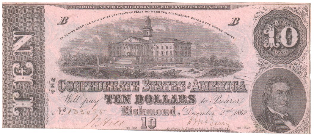 United States Of America The State of North Carolina, 5 Dollars,  1. 1.1865S2341aThe State of North Carolina, 5 Dollars 1. 1.1865VF/VF+£125.00Red o/p "Fundable only in 6 Per Cent Bonds"