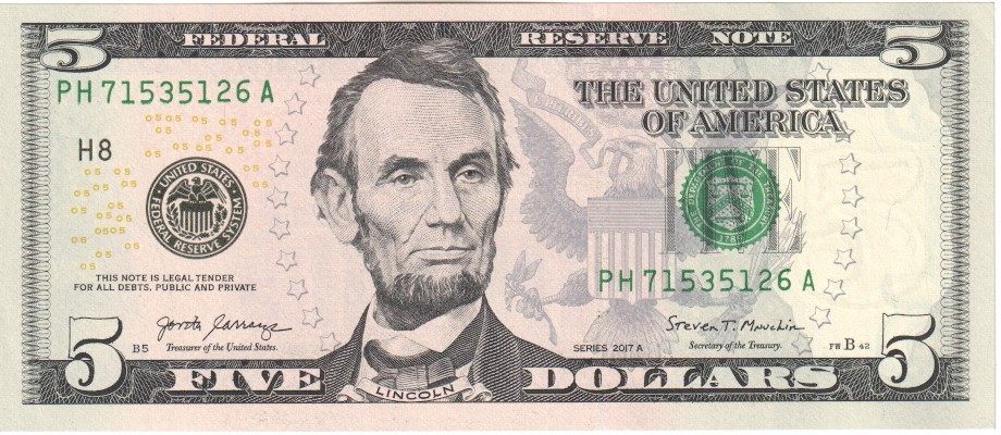 United States Of America 5 Dollars, Series 2017 Anew5 DollarsSeries 2017 AUNC£10.00