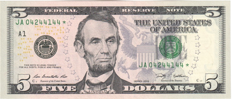United States Of America 5 Dollars, Series 20095315 DollarsSeries 2009UNC£20.00A1. Star Replacement *