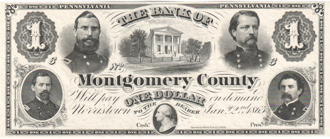 United States Of America Bank of Montgomery County, 1 Dollar,  2.1.1865 - - -Bank of Montgomery County, 1 Dollar 2.1.1865UNC£125.00
