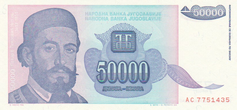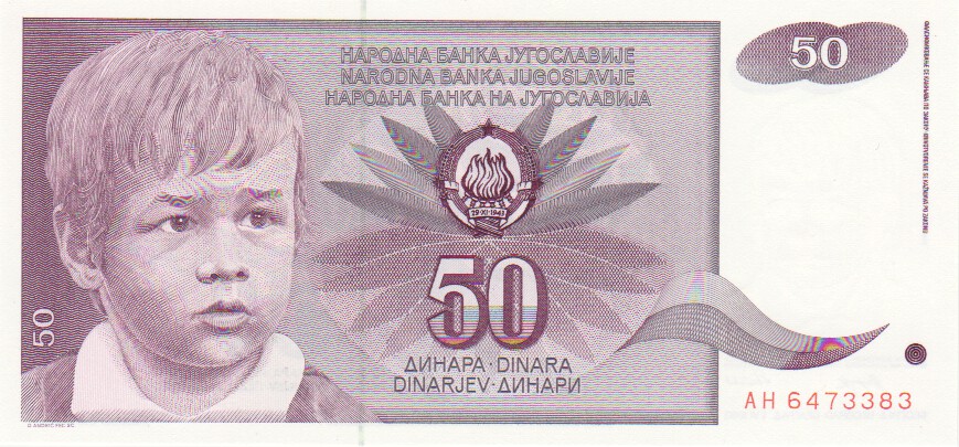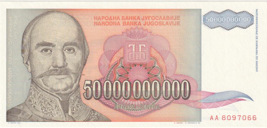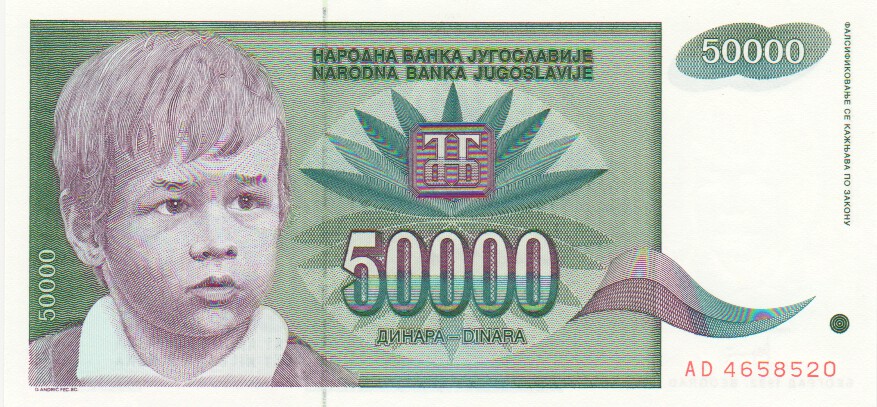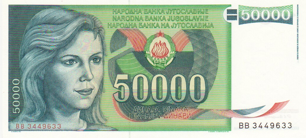 Yugoslavia 50,000 Dinara, 199313050,000 Dinara1993UNC£1.50