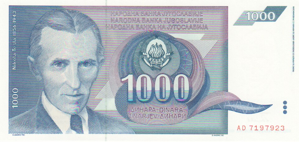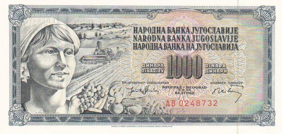 Yugoslavia 1000 Dinara, 19921141000 Dinara1992UNC£5.00