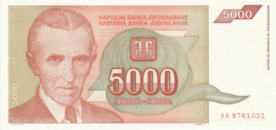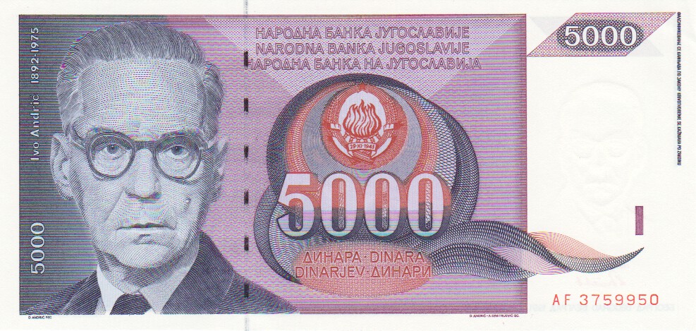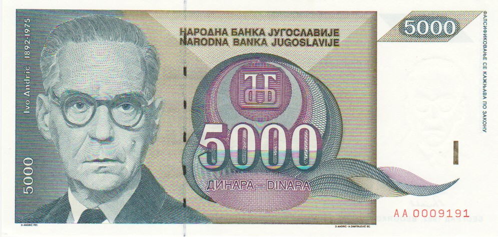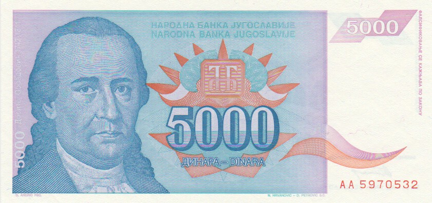 Yugoslavia 5000 Dinara, 19921155000 Dinara1992UNC£4.50
