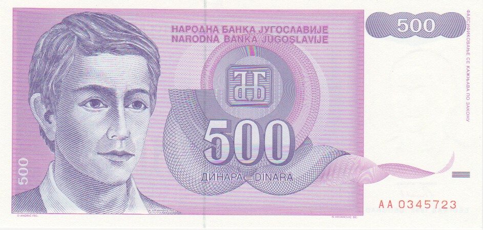 Yugoslavia 500 Dinara, 1992113500 Dinara1992UNC£3.00