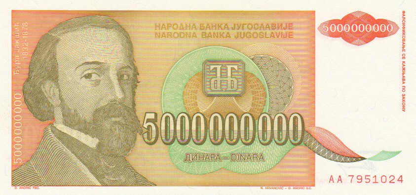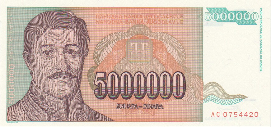 Yugoslavia 5,000,000 Dinara, 19931215,000,000 Dinara1993UNC£2.20