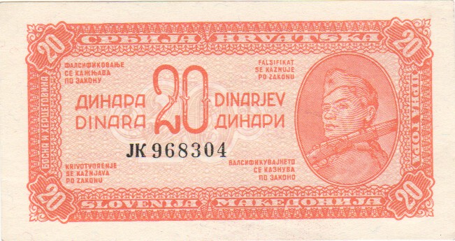 Yugoslavia 20 Dinara, 19445120 Dinara1944VF£5.00
