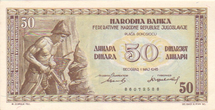 Yugoslavia 50 Dinara,  1. 5.194664b50 Dinara 1. 5.1946UNC£40.00