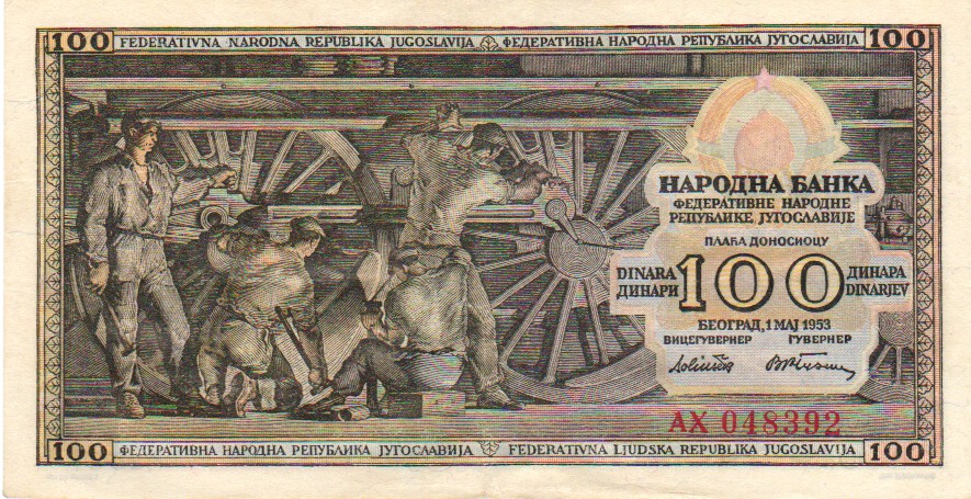 Yugoslavia 100 Dinara,  1. 5.195368100 Dinara 1. 5.1953F£25.00