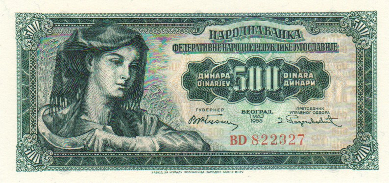 Yugoslavia 500 Dinara,  1. 5.195570500 Dinara 1. 5.1955UNC£10.00