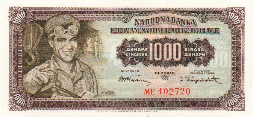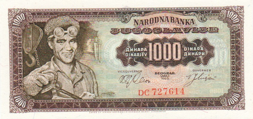 Yugoslavia 1000 Dinara,  1. 5.195571b1000 Dinara 1. 5.1955UNC£12.00