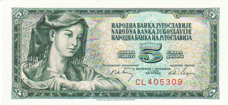 Yugoslavia 5 Dinara,  1. 5.1968815 Dinara 1. 5.1968UNC£1.00