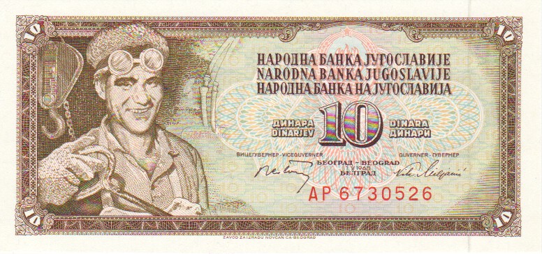 Yugoslavia 10 Dinara,  1. 5.196882c10 Dinara 1. 5.1968UNC£1.50