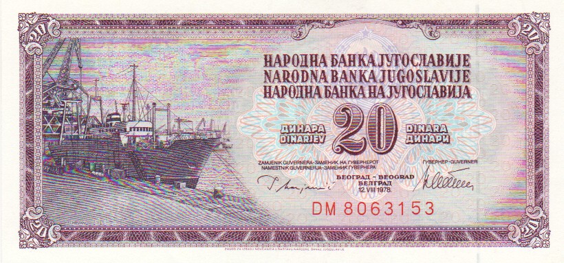 Yugoslavia 20 Dinara, 19.12.19748520 Dinara19.12.1974UNC£1.20