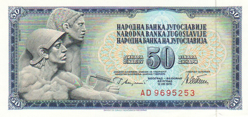 Yugoslavia 50 Dinara, 12. 8.197889a50 Dinara12. 8.1978UNC£0.70